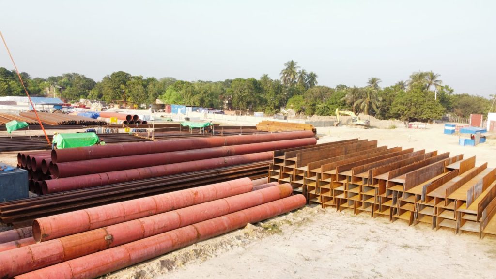A temporary jetty is a short-term marine structure built to provide safe access from land to water for loading, unloading, or construction activities. It is commonly used during port works, bridge construction, dredging, or coastal development projects.